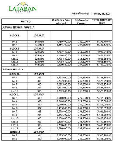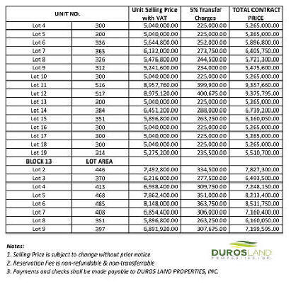 Unit Price: P14,500 per sq.m